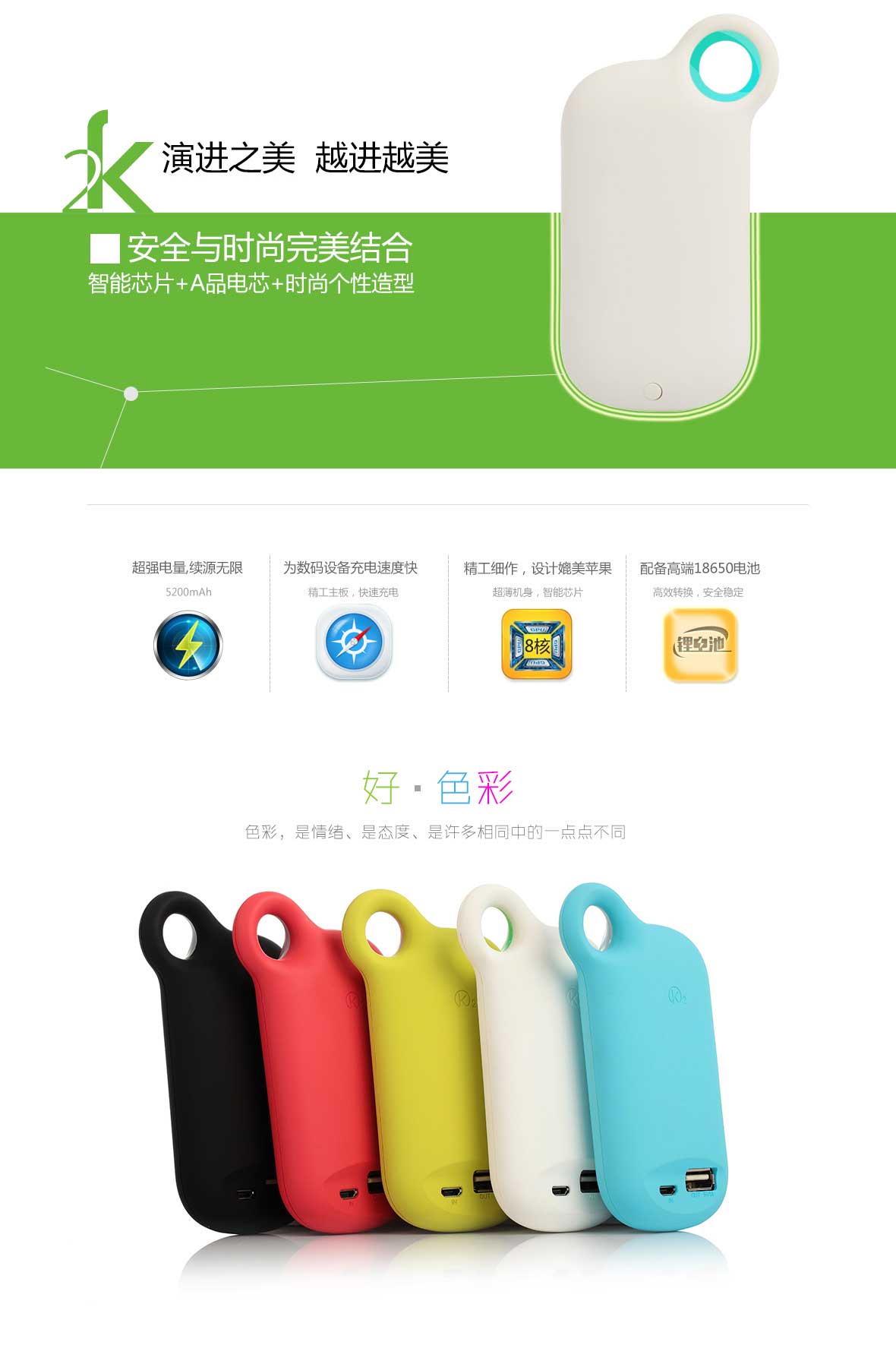 外形设计:新颖巧妙的环形圈设计,靓丽颜色搭配,高级亲肤的表面处理工艺